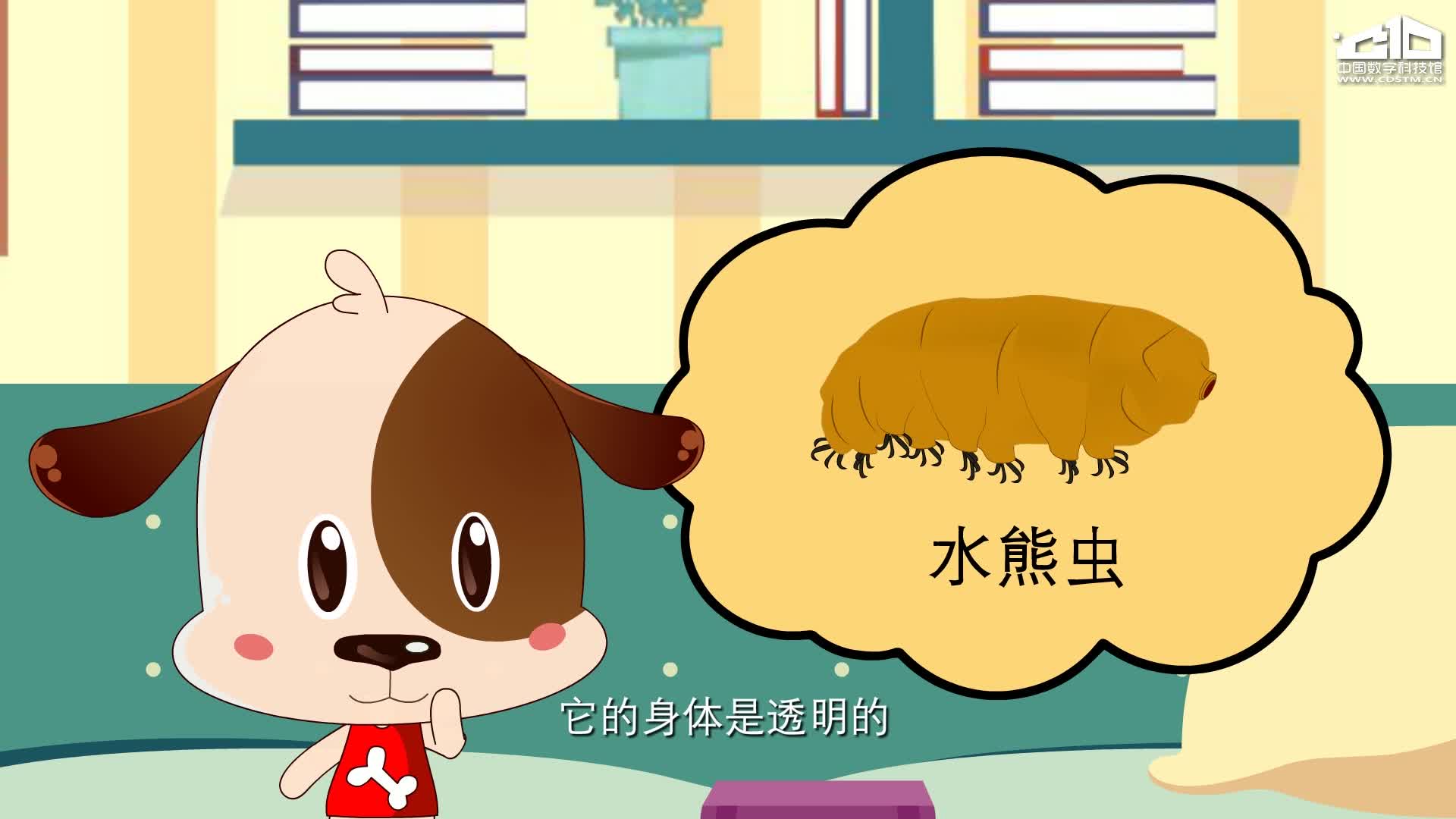 通过开开给心心讲解生物科普书中的知识,讲述水熊虫的外形结构、生存环境等内容,解释为什么水熊虫被称为“地球最强生物”。
