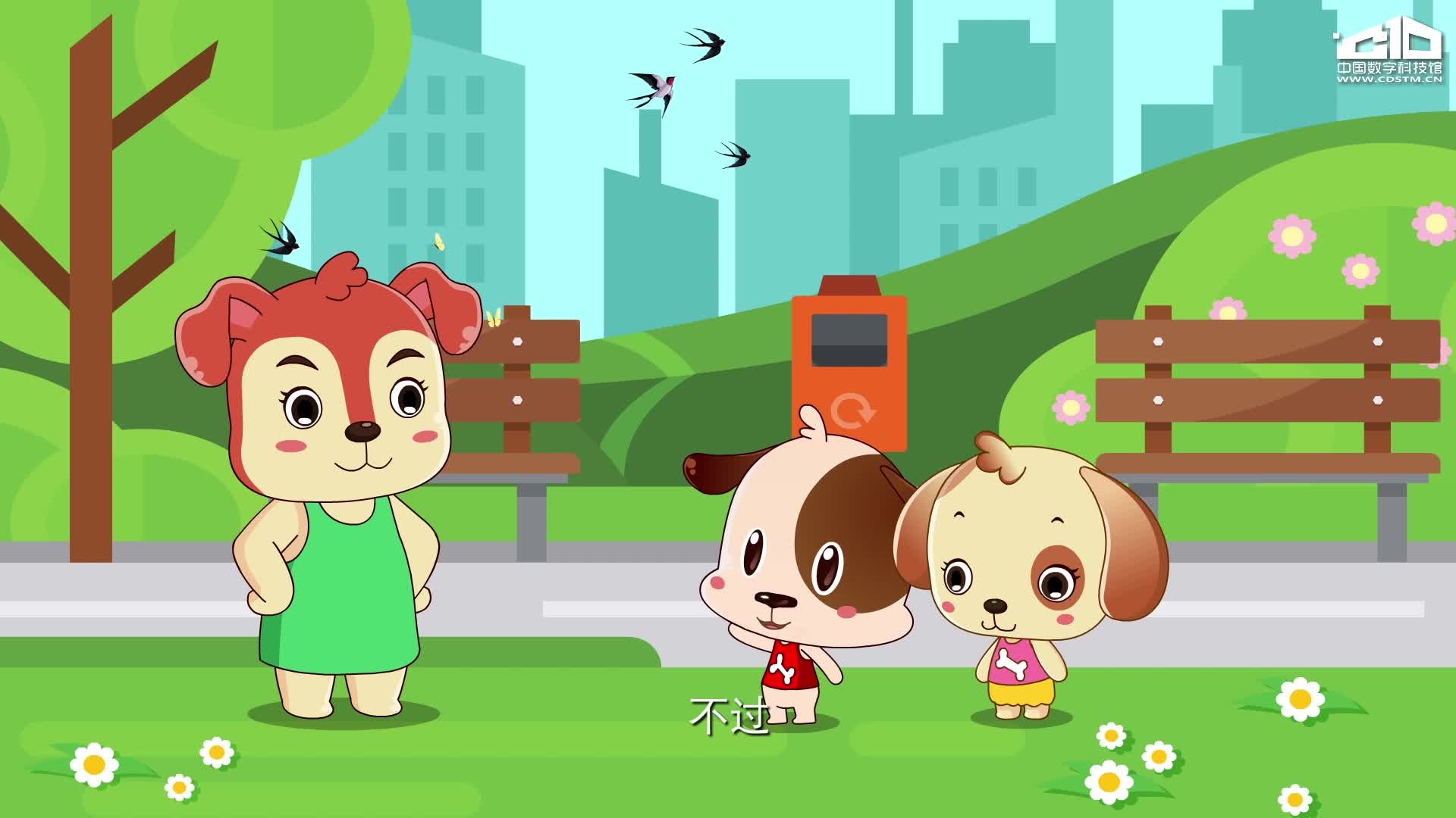 在公园里开开见到飞翔的小鸟,也想像小鸟一样飞上天空。于是妈妈向他讲解了鸟类可以飞翔,是因为特有的呼吸机制、骨骼和身体构造等因素。