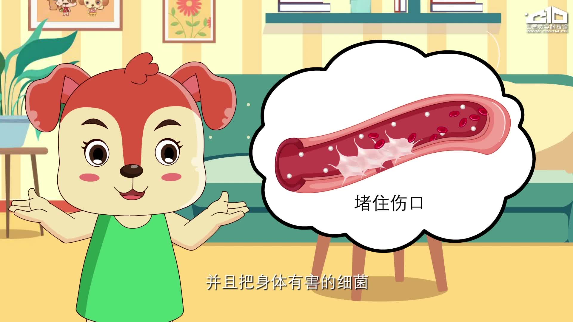 开开在摔倒流血后,观察到流血的伤口可以快速凝结。在妈妈的讲解下了解到血液的组成以及在人体中担负的重要功能。