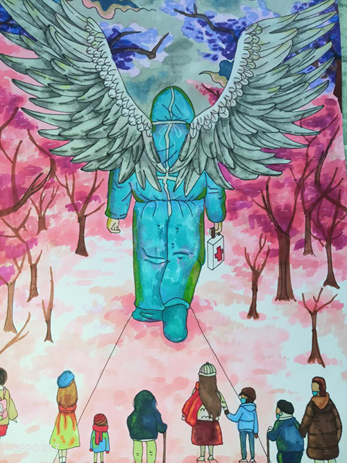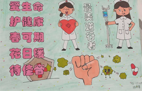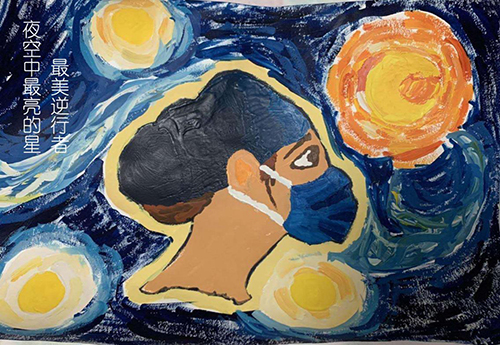在全国人民众志成城抗击疫情的特殊时期,小朋友们通过简笔画、水粉、油画、剪纸等不同形式的作品向逆行者们表达了心中那份沉甸甸的敬意。正如一位同学所写:“他们用执着与坚守,诠释着‘大医精诚’,向他们致敬!”接下来,让我们继续跟随小朋友们画笔下的抗击疫情专题创意海报,向疫情期间的最美逆行者们致敬!