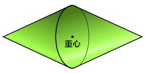 由于地心引力,物体在不受外力的情况下,会向下运动,重心位置也会随之降低。如图所示,双锥体的重心在几何中心处。