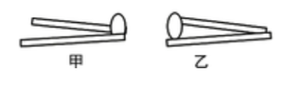 (2015年北京中考题)学校组织学生参观中国科技馆,同学们在“探索与发现A厅”里面看到一个十分有趣的“物体上滚?”实验.实验时,将双圆锥体轻轻放在倾斜轨道的最低端,看到双圆锥体从静止向轨道高处滚去.实验引起了同学们的探讨,小军认为“双圆锥体上滚”是真的,眼见为实;小乐认为“双圆锥体上滚”是错觉,双圆锥体不可能自动由低处向高处运动.小乐和小军为证明各自的观点,取了两根木条放在水平桌面上,将木条左端垫高,做成一个倾斜轨道,将双圆锥体放在轨道右端,如图甲所示,由静止释放后双圆锥体向轨道高处滚去,双圆锥体最终停在轨道左端,如图乙所示.这个实验成功再现了在科技馆看到的现象.请你根据图甲、乙所示的实验,选择适当的器材,通过测量判断小军和小乐谁的观点正确,写出你的测量方法并简要说明.