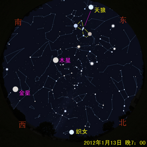 天上有两颗很亮的星:天狼星、织女星,它们能够帮助我们找到太阳系在银河系中的行进方向:就是远离天狼星,追赶织女星。 今天晚上,日落后,织女星在西北方,过1个多小时,它将运行至地平线附近,此时,天狼星从东南方升起。如果你面向织女星,背朝天狼星,那么,你就正对着太阳系绕着银河系中心运动时的前进方向! 用猎户座腰带的三颗星向下延伸,遇到的最亮的那颗星就是天狼星。 今天晚上,就体会一下,乘坐地球号宇宙飞船,面向前进方向,在银河系中前行的感觉吧!