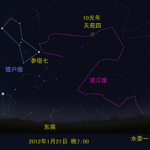 另外,注意看一下波江座中的天苑四,也就是波江座ε星,它有一颗行星,距离地球约为10光年,是距离我们最近的太阳系以外行星。上世纪60年代,寻找外星人的射电望远镜就曾经监测过它,科幻小说作家也常把它想象成外星人基地!