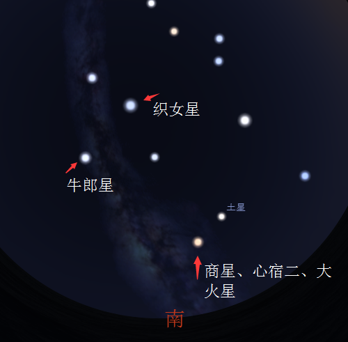 傍晚,如果天气晴朗,请看南方天空,那儿有颗淡红色亮星,就是商星,是天蝎座中最亮的星,也叫心宿二。