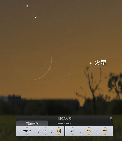 今天日落后,如果天气晴朗,那么就去找找月亮。找到月亮后,会发现它附近有颗红色亮星,那就是火星。