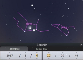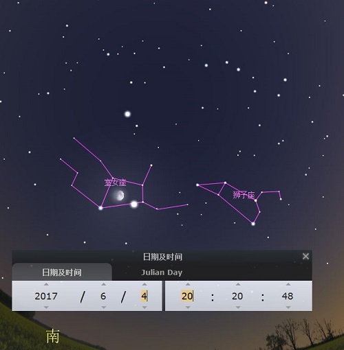 今天日落后,如果天气晴朗,请看西南方天空,那有大半个月亮,在它右下方不远处,有颗亮星,那就是我们太阳系中个头儿最大的行星,木星。
