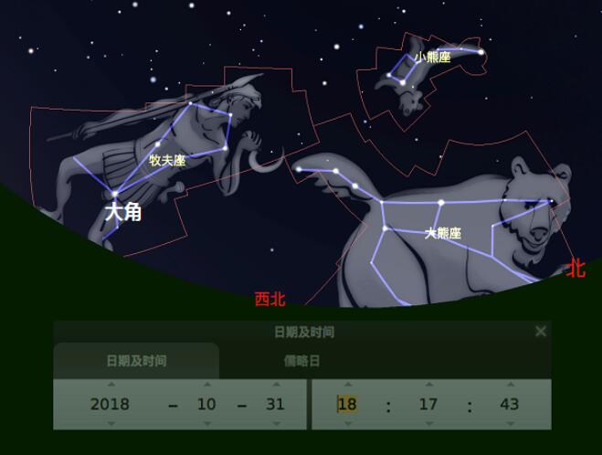 要找到天上的这盏南瓜灯,先找到北斗七星,顺着斗柄几颗星:玉衡、开阳、摇光,连成的曲线自然延长出去,遇到的第一颗亮星,闪着橙色的光。人们称它是“众星之中最美丽的星”。