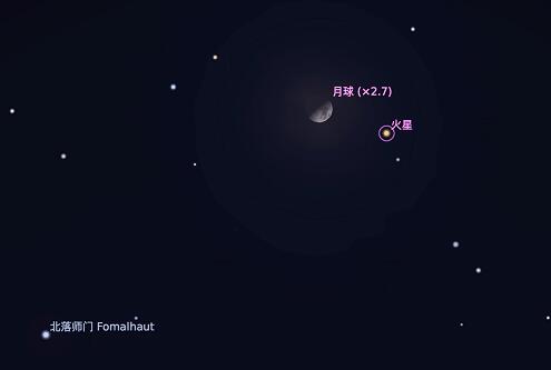 2018年7月27日火星大冲,红色火星整夜可见,此后直到2019年5月,只要天气晴朗,天一黑,火星就在夜空中闪亮。11月16日,月亮运行到火星附近,呈现火星伴月的景象。