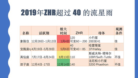 2019年英仙座流星雨和双子座流星雨发生时,月光干扰严重,所以观测条件不佳。