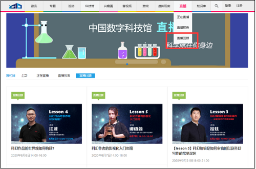 登陆中国数字科技馆官网(https://www.cdstm.cn/),在直播栏目即可回看↓