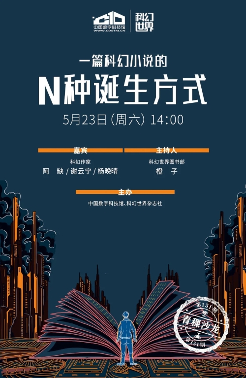 「青稞沙龙」是中国数字科技馆主办的品牌活动。其中的科幻系列与科幻世界杂志社合作,邀请中国知名科幻作家、研究者与评论家登台,围绕科幻小说、影视中的科学想象和科学哲理展开深入探讨,为科幻文学爱好者提供了一个良好的线下交流和学习平台。此次活动是中国数字科技馆「青稞沙龙」品牌活动的第151期。