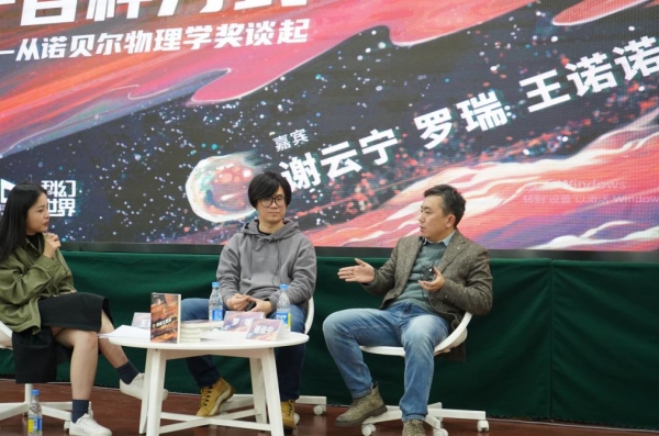 活动后半场则是由三位嘉宾开展的一场“圆桌对谈”。对谈活动由知名青年科幻作家王诺诺主持,王老师生动活泼的主持风格和两位24K纯理工科嘉宾完美契合,整场活动频频爆梗的同时也干货满满。小编摘录了一些精华部分,一起来看看三位都说了什么吧!