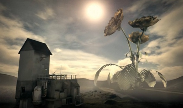 在未来高度发展的工业社会里,地球的环境遭到严重破坏,工厂的烟囱排出的黑雾将天空遮蔽。一个老人站在阳台浇花,这朵花也许是地球上最后一枝花朵,却也奄奄一息。老人默默地凝视着眼前荒凉的景象,十分悲哀。一天老人收到一个神秘的包裹,无意发现包裹中装的竟是他自己的这个世界,几番周折,他决定铲除这片被污染的土地……