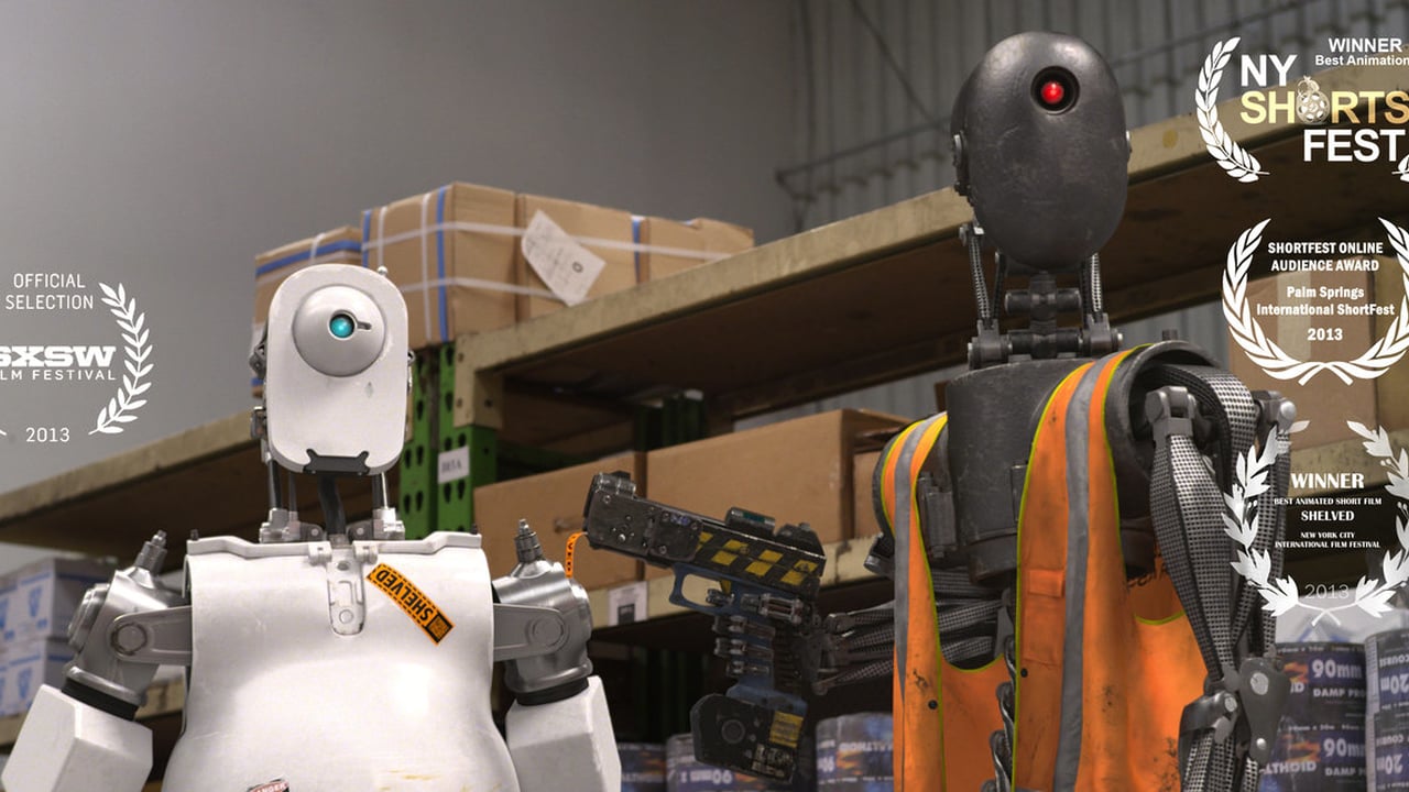 这部短片无疑讲述了一则职场黑色幽默故事,自我感觉良好的白机器人帮美女秘书签署文件,万万没想到,自己一个个让别人签署的竟然是解聘自己的文件。不仅如此,它怎能想到自己最后像货物一样,被搭档归了档。双重讽刺效果令人捧腹的同时,也不禁令人唏嘘。