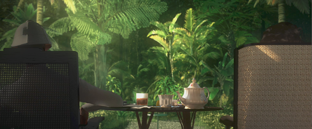 充满热带风情的森林别墅里,阳光斜射的慵懒午后,贵妇人与长官丈夫闲散地喝着下午茶,一切如此闲适、静谧、安逸,然而,看似永恒的时光风景瞬间转换,热带植被疯狂地生长覆盖了一切,长官昏睡不醒、贵妇人神秘消失、黑人女佣成了大地之母……