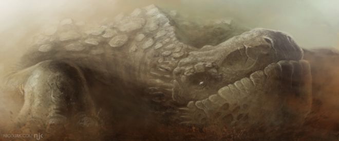 荒芜的沙漠,一个巨型怪兽缓慢行驶,每一次艰难的挪动对它来说都是举步维艰。伴随它最后的轰然倒下,聚居在怪物身上的人类便设法逃离去了下一处……