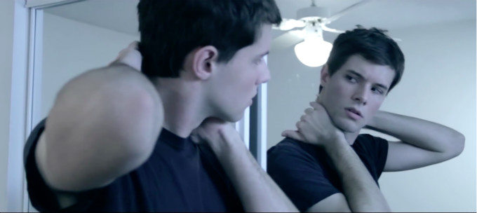 影片开头男主人公静静躺在床上望着天花板,没有一丝困意的等待着照常响起的八点闹钟,准确的按下。身着一身黑睡衣的男主开始熟练的收拾床铺,先把枕头均匀拍平,再用双手整齐地划过床单的首尾,一套动作结束后突然意识到哪里不对,又回头重新来过,如此反复。