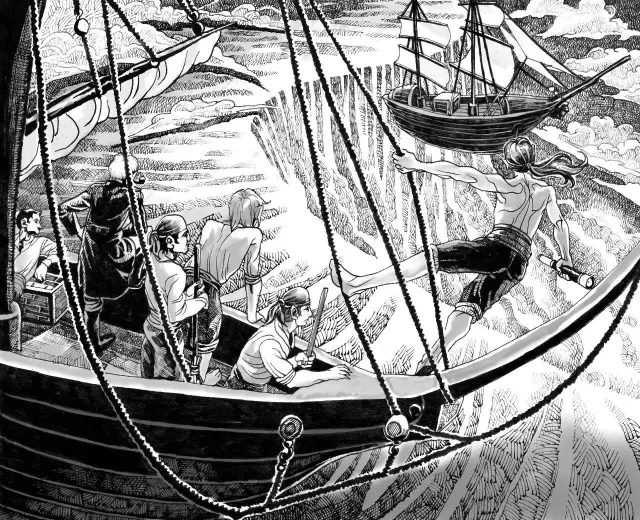 国王和王后支持了哥伦布。包括十七艘船和一千二百名船员的巨大船队,在不到五个月的时间内就组建完成了。这些船只是根据以太之海的特性设计的,据说可以离开大海,沿着瀑布而下,驶向那神秘莫测的新世界。