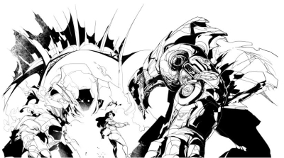 这时,那个战斗机器人的助推火箭点火了,将它转向,面对着拦截机。