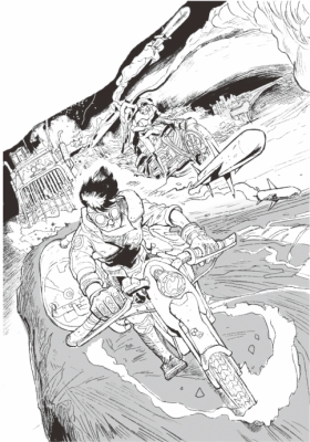 飙车党首领打开放映机,播放很久以前的人类电影。只见屏幕上的飙车党呼啸而过,一群叛逆的朋克头少年蹲在屋角抽烟。飙车党首领指着屏幕,歇斯底里地大叫:“看见没有!真正的人类就应该是这样子!”