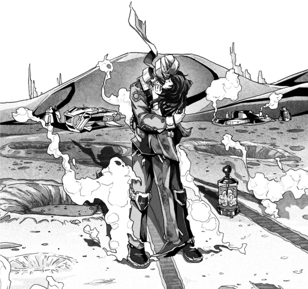 罗江一边拼命跑着一边甩掉了腰部载重,这非常危险,在低重力下险些被沙尘风暴卷进去。但还没等他们跑过去,前方那辆登陆车就已经猛地撞在了一个哈尔坑边缘,翻了个底朝天。他们赶到登陆车旁,发现整个车身已经被金属沙尘蹂躏成了筛子,四个大灯都不见了,只剩下唯一的一个射灯还在坚强地亮着。罗江一眼就看到车门上是第三先遣队的标志,不由得心里一沉。士兵们七手八脚地把车门撬开,发现里面只有两个人,都穿着第三先遣队的队服。副驾驶上的人看起来已经昏了过去,司机位置上的人带着上尉军衔,挣扎着抬起手。