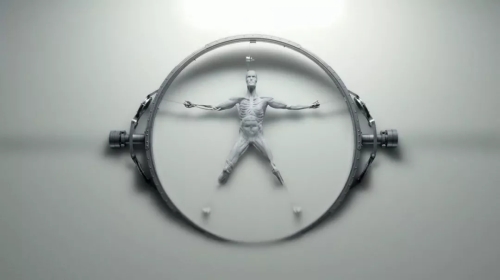 机器心脏将血液置换成浅黄色生命维持液;肝脏、心、肺、胃、小肠等无用器官被移除,仅剩脑与脊髓;手脚躯干像菜市场的肉排一样被切割肢解,最后只剩头颅连接着一条白生生的脊椎;随后,依据头骨模型注入银色金属,全身骨架也由金属骷髅架取代,各种仿生材料覆盖在骨架……