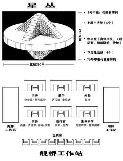 不过,在小说情节、节奏、线索编织和文本的表现上,《星丛》明显技高一筹。作者甚至还设计了一张船的简图以及舰桥座位布局图以助读者理解。这也证明了教父级名头不是白来的。