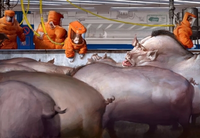 这就是世界之敌的产房,也是我们当下的困境:别忘了,美国和苏联曾经如此尽职尽责地扮演着一个时代的假想敌;而到了今天,随着新帝国的诞生,敌人的形象却变得越来越模糊不清。而我们则像因为发烧和饥饿而奄奄一息地独坐在沙滩边的吉米,对身边发生的一切失去了概念。我们能看到世界的轮廓,却无法认知这个世界。是大公司?进化出智能,随时准备吃人的器官猪或其它改造生物?还是在末日世界中恪守丛林法则而生存的彩弹手?