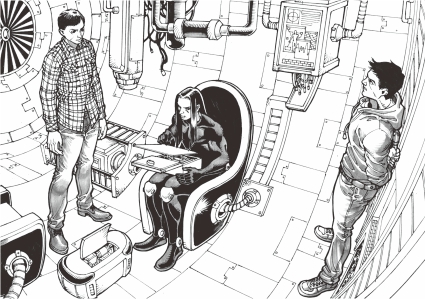“超空传输线现在已遍布全球各个国家和地区,假如你家在美国纽约长岛,工作地点在澳大利亚堪培拉,没关系,只要像一百年前的普通纽约客一样八点半打好领结、拿好公文包即可。连家门都不必出,——如果您选择在家中安装一个超空传输微站,稳疆(Hold Your Horses)公司为您竭诚服务。”