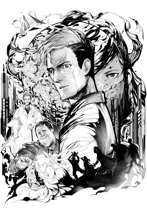 早晨的太阳高悬在天空中,但并不刺眼,微微的暖意透过窗扉送进男人裸露的胸膛,暂时驱散了记忆中刺骨的黑暗。男人俯下身,目光穿过地上鞋带般细长的街道与蝼蚁般的车辆,停留在地平线处方尖塔般的玻璃建筑上。在微暖的阳光下,男人愤怒而躁动的双目渐渐归于冰冷,充满了理性的冷酷与凌厉,像鹰隼。