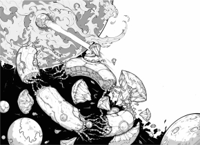又是一阵吱吱嘎嘎的晃动,飞船外似乎掠过一阵气体,那是矢量发动机在调整飞行姿态,要飘走的第四行星又缓缓地回到舷窗中央。飞船里的人工重力也正常了,控制室里下起了杂物雨,我和理查德缩着头提防被掉落的物件砸到,最后随着从隔壁舱室里传来的几声巨响,飞船终于恢复了平静。