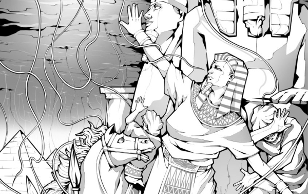 法老的军队冲上街头,命令所有人都必须回到家中,不得外出。在美尼斯的命令下,来自努比亚和利比亚的奴隶们被押送到尼罗河边悉数斩首,他们的鲜血和头颅被抛进圣河献祭,尸首则暴尸荒野。