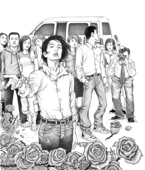 没过多久,一辆小面包车倏忽而至,在喷泉前停下。车身上印着“京华晚报”几个字和图标,一男一女两个记者拿着话筒跑下车来,很快在旁人的指点下锁定了目标,向姜大勇奔来。他们人还没到跟前,一连串问题先滔滔不绝而来:“同学你好,请问你就是今天送花的男主角吗?你的花呢?听说你家里条件不好,你有没有申请贫困助学金?你父母都下岗了对不对?你花那么多钱送花的事他们知道吗?你觉得这样花钱值得吗?你是否——”