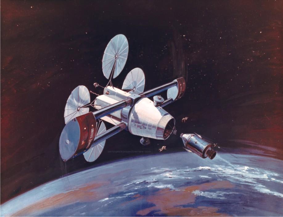 1928年,奥地利作家赫尔曼·诺丁提出了人工重力空间站的详细设计。这个名为“生命之轮”的空间站外观呈轮形,轮轴的一端是发电站和天文台,另一端是巨型凹面镜,可汇聚阳光产生动力,驱动居住舱所在的轮形结构。