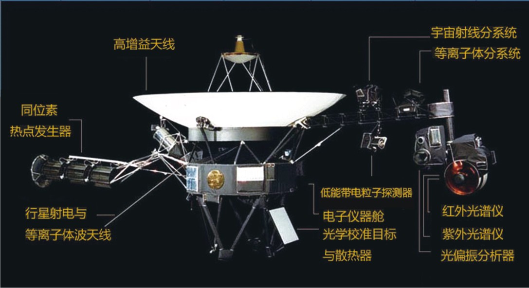 “旅行者”飞船本身也代表着20世纪70年代的最高科技水平。每个“旅行者”重721.9千克,由6.5万个零件组成,其中有105千克是科学探测仪器的重量。飞船主体呈扁平的十面棱柱状,顶端装有一条直径为3.7米的抛物面天线,左右两侧各伸出一根悬臂,较长的一根是磁强计支柱,较短的一根是科学仪器支架。探测仪器有10种,主要是行星及其卫星的摄像设备和各种空间环境探测设备。因为离太阳越来越远,无法依靠太阳能电池供电,能源采用核电源,把钚放射性衰变产生的热量转化为电力,功率仅为420瓦特,换句话说,每小时只能发出0.42度电。但就是这样微弱却绵长的电力,持续供应了36年,赋予了飞船以“生命”。即便如此,飞船的电力仍在慢慢衰减,近十几年来,不断有功能因电力有限而停止运作,如1998年停止了扫描平台及紫外线观测;2012年停止了回转运作,只能以每秒1400字节的速率传回信息。预计到2016年,仪器间将无法共享电力,到2020年以后,将没有足够电力启动任何仪器了。地面控制人员还得不断地拆东墙补西墙,为最必要的仪器挪用电能。2011年11月“旅行者”2号接到地面命令,切换到备用姿态控制推进器,这一措施节省了大约12瓦的电能消耗。此时,主推进器已经点火31.8万次。飞船各部件寿命之长、质量之精,令人赞叹。尽管上面的某些设备用目前的技术标准来看简直“弱爆了”——八通道磁带记录机和只有现在智能手机内存24万分之一电脑存储空间。但就是这样简单却耐用的设备,支持它们飞了36年,而且还将继续飞下去。英国皇家天文学家马丁·里斯爵士就曾感慨道:“实在让人感到不可思议,这个人类利用70年代的技术制造的脆弱物体,竟然能够抵达如此遥远的空间。”