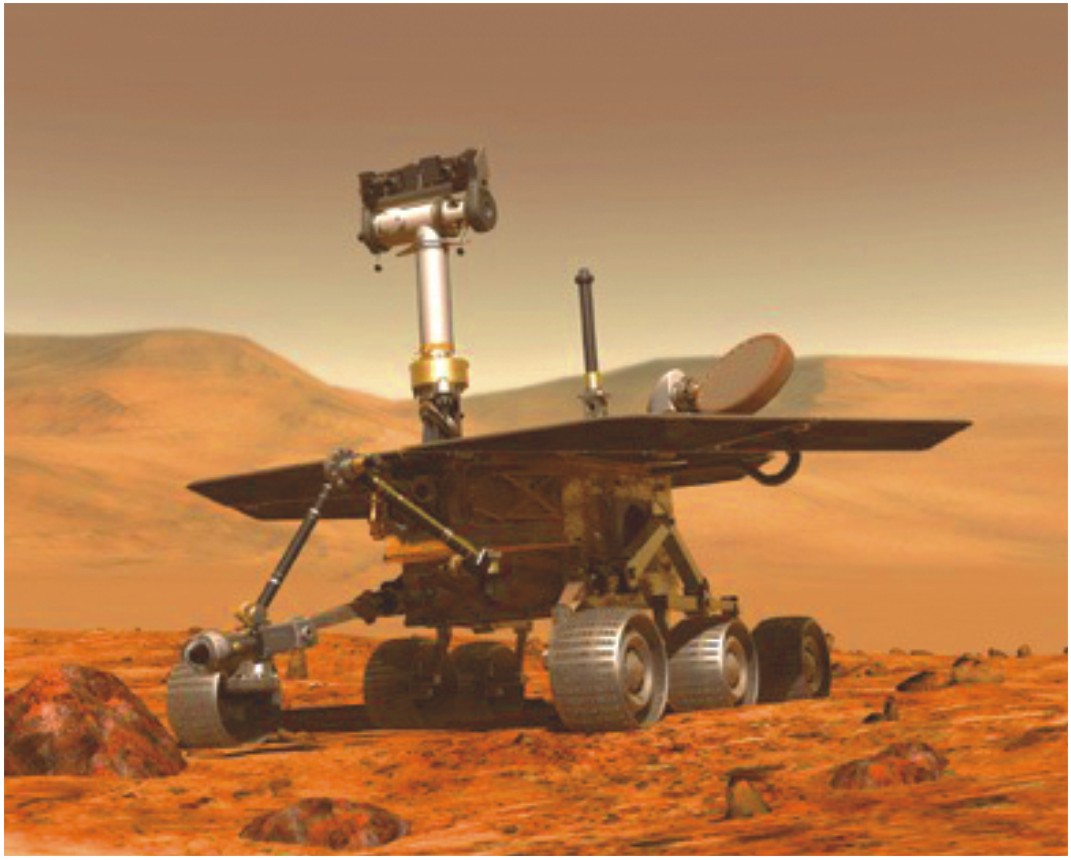 而火星则是除地球之外人类了解最多的太阳系行星。1964年11月28日美国发射“水手4号”火星探测器,证实这里是一个既没有生命更没有“运河”的荒寂世界,从此科幻小说家再也不写“火星人”了。在美、苏两国的30余个火星探测器中,1975年8月20日发射的“海盗1号”和随后发射的“海盗2号”最为杰出,两个“海盗”的着陆器分别于1976年7月20日和9月3日用安全气囊降落在火星表面,先后传回数万张高清晰度照片。最不可思议的是2004年1月4日在火星登陆的漫游车“勇气号”和3个月后在火星另一个半球登陆的“机遇号”,设计寿命原为3个月,但由于火星的风能拂去太阳能电池板尘埃和地球上的高超控制,这两架漫游车五年多来爬沟越坎、屡蹶屡振,至今依然保持着顽健的活力。相比之下,2008年5月25日在火星北极登陆并发现了水的凤凰号却耐不住严寒,于当年11月10日和地球失去了联系。至今人们仍在千呼万唤,期盼着这只“凤凰”从冬眠中醒来。