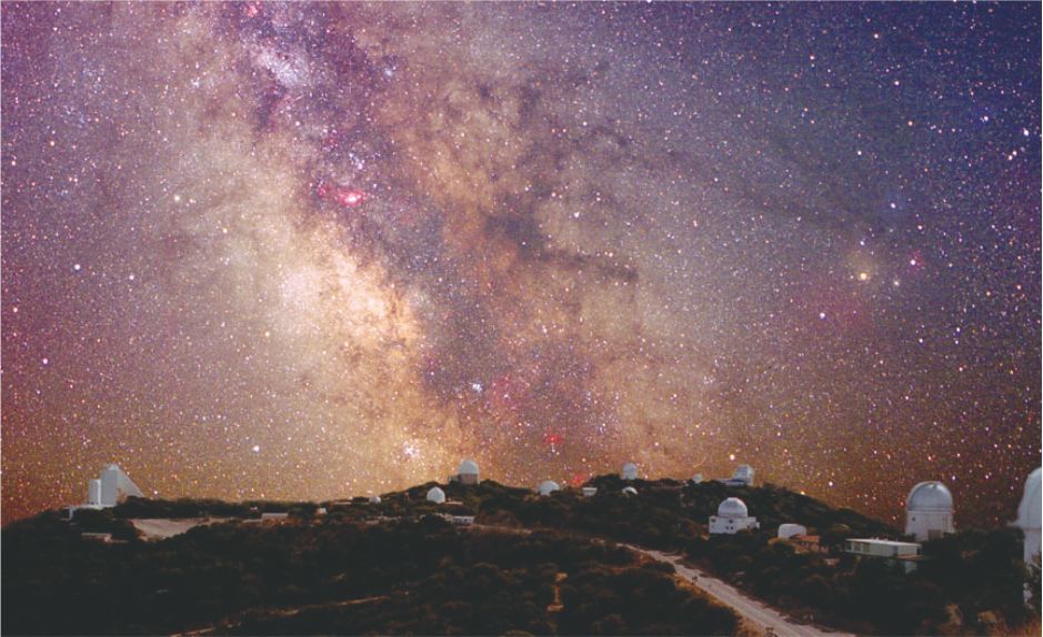 为防止光污染,偌大的观测站里连一盏路灯都没有。山梁上零星分布的圆顶与山谷中的数幢楼房也罩在一片黑暗中,看不到一点儿灯光。这里的窗子都使用双层窗帘,晚上不会漏出一丁点儿光线,以免影响天文观测。这种只有星光的黑暗是习惯了城市生活的人很难想象的。