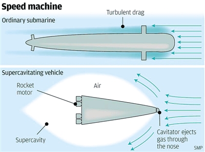 事实上,超空泡技术并不稀奇,早已应用。所谓超空泡技术,是把高速航器罩在一个气泡中(比如在鱼雷顶端设置一个空泡发生器),壳体不直接与水接触,从而减少黏滞阻力。前苏联开始研发的超空泡鱼雷“风暴”系列,最高时速可达370千米;美国发明了可以穿透水雷的超空泡射弹;前几年美国公布的研发中的“幽灵”型船,也试图用超空泡提高航速。