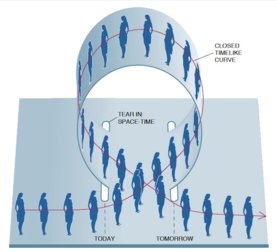 对于时间旅行的争论是因为我们的物理理论中不允许时间旅行。在爱因斯坦的广义相对论中,引力被描述为被能量与物质弯曲的时空。最极端的引力场,如旋转黑洞的引力场,理论上能够弯曲现实,造成时空折回。这样便形成了一个“封闭类时曲线(CTC:closed timelike curve)”,一个能够穿越时空回到过去的回环。