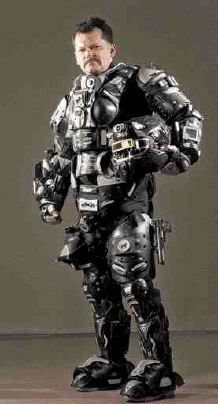 上面两幅图,乍眼看去,您八成会以为左边的老兄在搞Cosplay模仿秀,但其实不然。尽管这位虎虎生威的“军官”的确很可能是微软著名科幻游戏《光晕》(Halo)的超级粉丝,可他那身行头的确是百分之百的真家伙,而且还是他自个儿发明的呢。