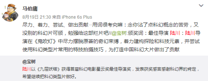 再几天前,8月19日,2016全球华语科幻电影星云奖在成都,陆川凭《九层妖塔》荣获最佳导演奖,
