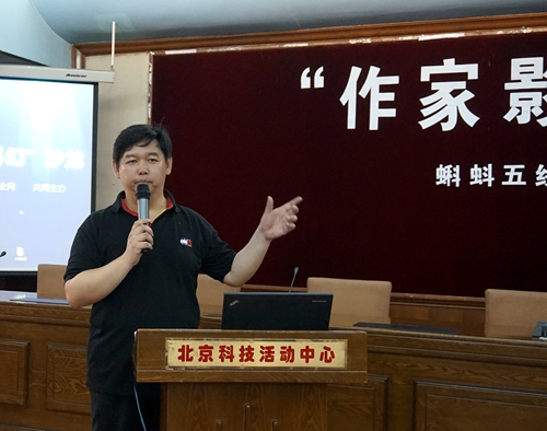 本次沙龙的主题是“作家影人共话科幻”,为了实现这个“共”字,大家都做了努力。以前,科幻作家和影视工作者各是各的圈子。对于国产科幻片迟迟不能兴旺这个事实,作家们看在眼里,急在心上,却说不出什么好办法,每次这样的会议都以抱怨收场。留下一堆讽刺挖苦的言论,唯独没有建设性意见。