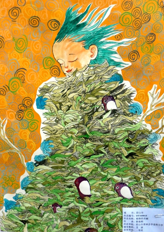 陈俊熙获省一等奖的科幻画作品《植物的贡献》