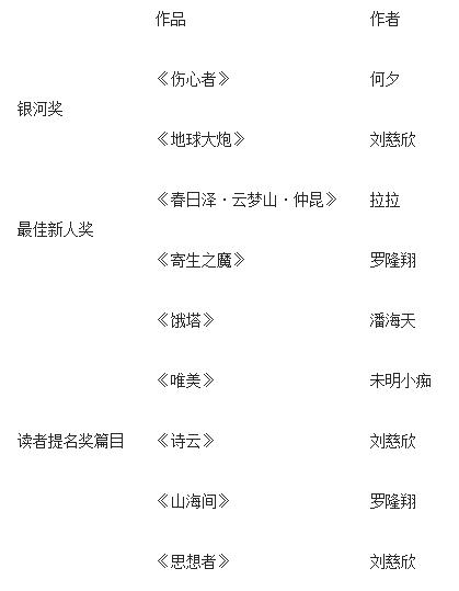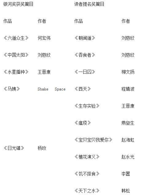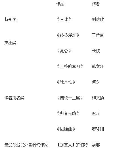 第十二届中国科幻银河奖在北京师范大学举行,获奖名单如下: