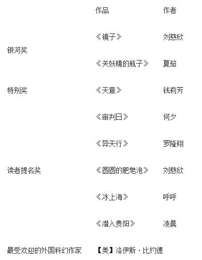 第九届中国科幻银河奖在上海科学会堂举行,获奖名单如下: