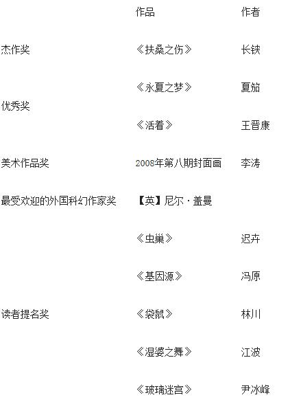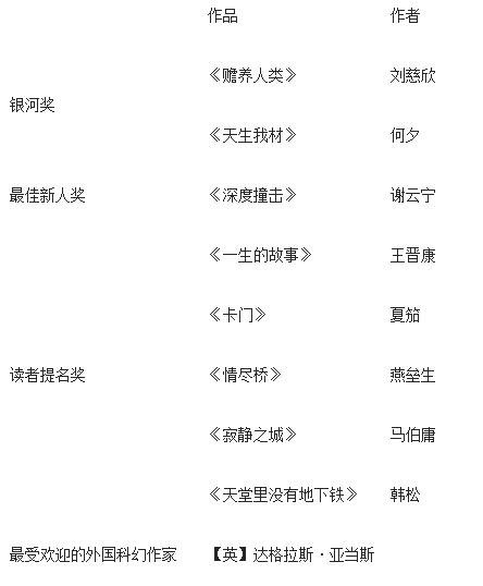 第八届中国科幻银河奖在北京中国科技会堂举办,获奖名单如下:
