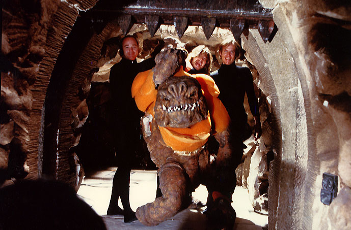 在《绝地归来》中,赫特人贾巴(Jabba the Hutt)的宠物兰克(rancor)看起来很凶残,但剧组其实尝试了两三次才获得满意的效果。剧组一开始试图让人穿上兰克的道具服,但这并未带来预期的外观,于是他们选择制作杖头木偶。他们与四五名木偶操纵者在一个微缩场景里把这个18英寸的木偶当成实景生物来拍摄。马克·哈米尔(Mark Hamill)与兰克的场景是在蓝幕前拍摄的,然后被合成进木偶的镜头。