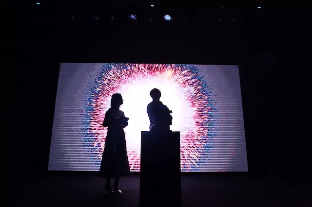这场活动的全名叫“三体宇宙大爆炸”。现场,刘慈欣按下巨大的红色按钮,背后银河闪烁,象征由他认可的一个庞大宇宙正式诞生。