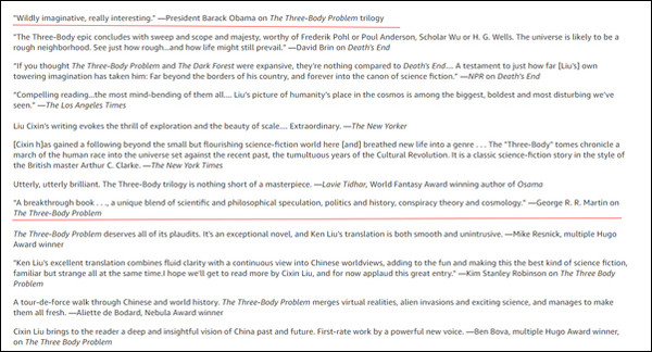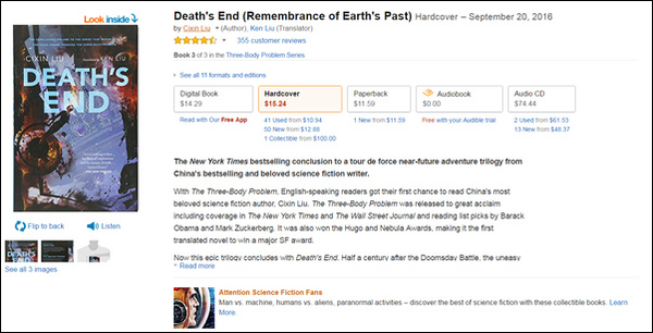 在亚马逊上,《三体3》拥有4.6分的好评(满分5分)。